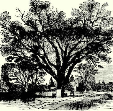 They are trees — grand old trees, about which memories cluster like the trailing vines. They are not numberous, and therefore more precious. In the shadows of the dark forest — in the light of the lofty hills — in the warmth and beauty of the broad plains of the great globe, they stand in matchless dignity as exceptions. They are Patriarchs in the society of the vegetable kingdom, recieving the homage of myriads of children — Priests, who have ministered long and nobly at Nature's alter — Kings, for whom vast multitudes have fallen protrate — Chroniclers, within whose invisible archives are recorded the deeds of many generations of men who have risen and fallen since the ancestral seens of the ancient trees were planted. B. Lossing, "American Historical Trees," 1862 |
