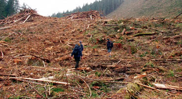 Extensive clearcutting and road building are seen in aerial views of Washington State on Google Earth (left). This urgent worldwide problem is the same whether it occurrs in the developed or developing countries. Indeed the insane "clearcut – to – the – end" liquidation policy continues today in the endangered temperate rainforests of BC and Alaska. The legacy of the 1864 Northern Pacific railroad land grant in Washington is massive clearcuts and nature destruction. Today the only way forward is to adopt a sweeping new "Zero Cut" policy for all publicly owned forests. |
